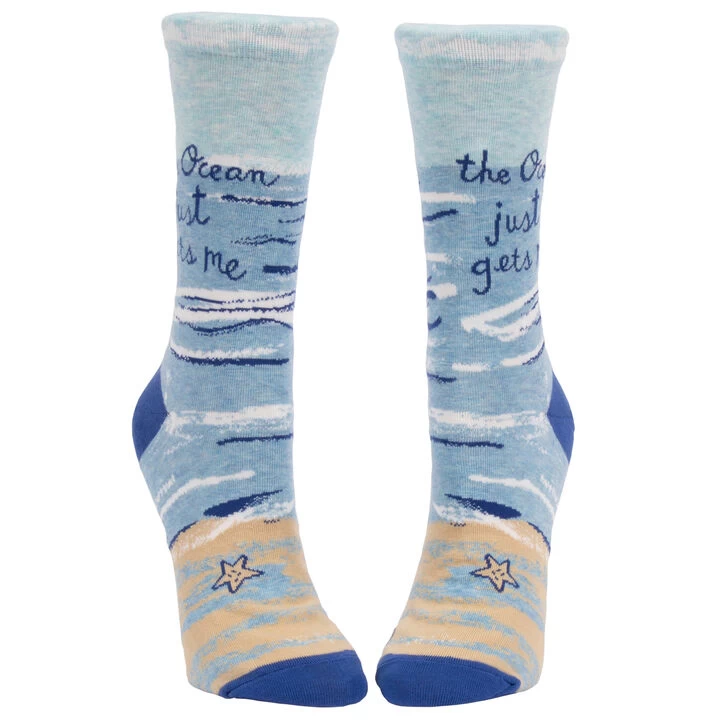 - PLEASE NOTE: Blue Q socks feature panoramic art – awesome from every angle. There’s no “right and left.” The sassy phrases fall on the outside of your right leg, and the inside of your left.