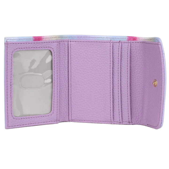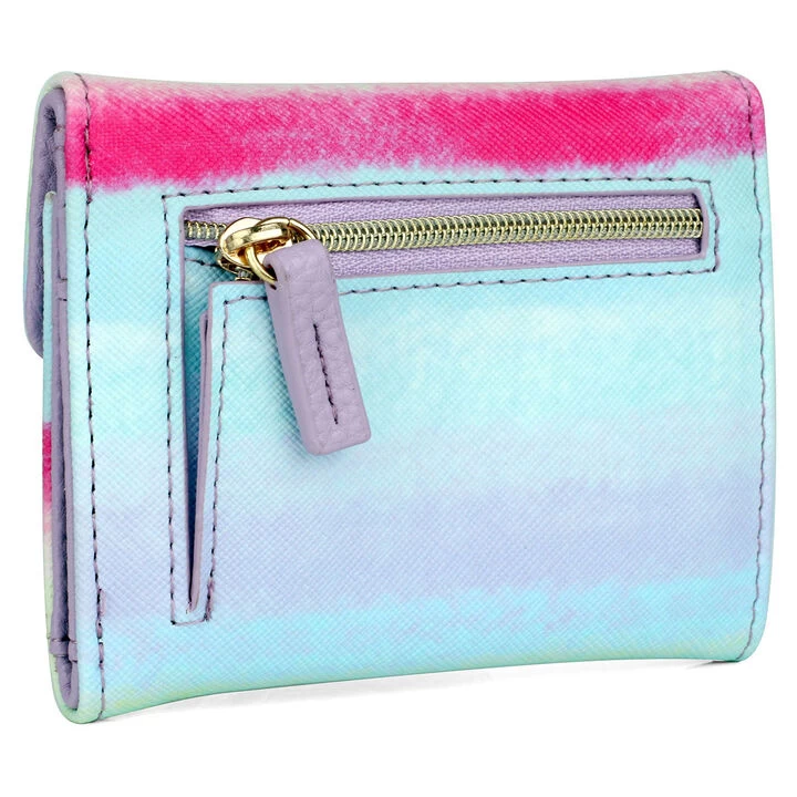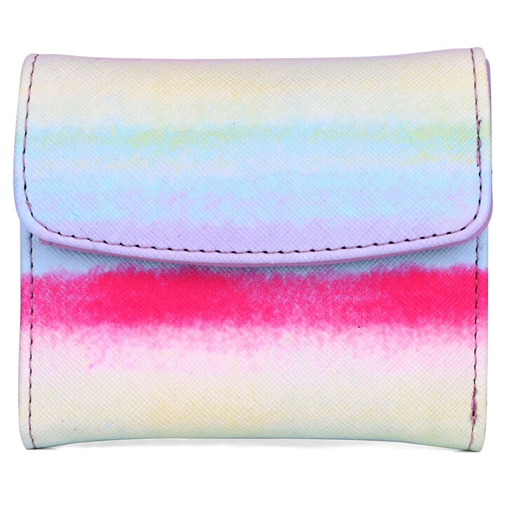 Buxton® Women’s Ombre printed Vegan Leather with RFID blocking lining Pik-Me-Up® Mini-Trifold features a bill compartment, 4 credit card slots, utility pocket, ID window and back zipper pocket.