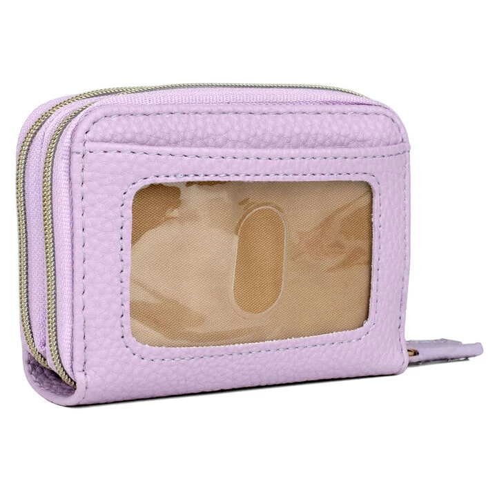 Buxton® Women’s Solid Pebble Vegan Leather with RFID blocking lining Gold Tone Hardware Pebble Pik-Me-Up® Wizard Wallet features an outside ID window, full zipper section with 9 accordion credit card pockets and 2 utility pockets, gusset zipper back section with 2 utility pockets.