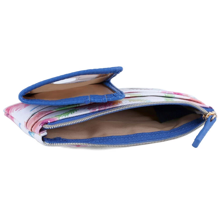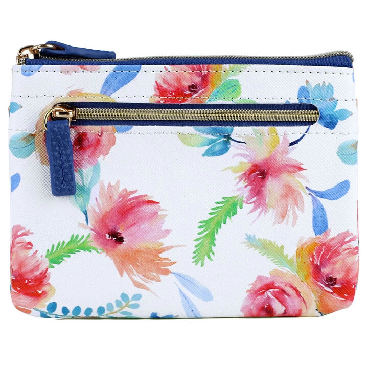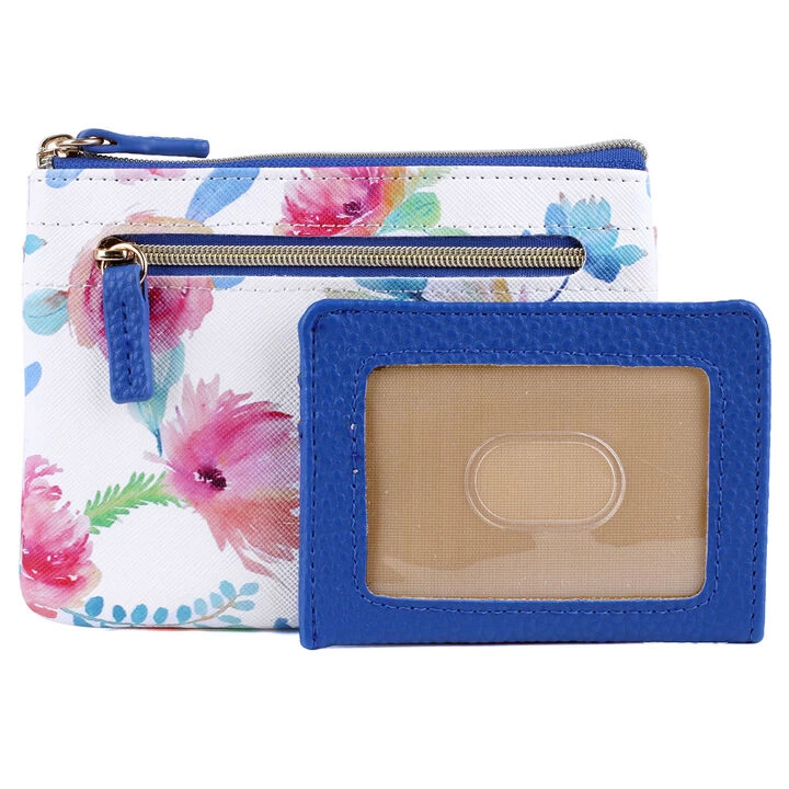 Buxton® Women’s Watercolor Garden Printed Vegan Leather with RFID blocking lining Pik-Me-Up ID Coin / Card Case features a top zippered main compartment, pull-out ID window with 2 credit card slots, front zippered pocket and back ID window and slip pocket.