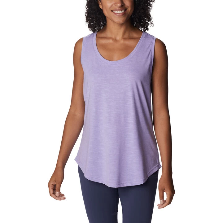 Go straight from your hike to hanging out with friends in Columbia® Women’s Cades Cape™ wicking tank top with a casual curved hem and center-back seam.