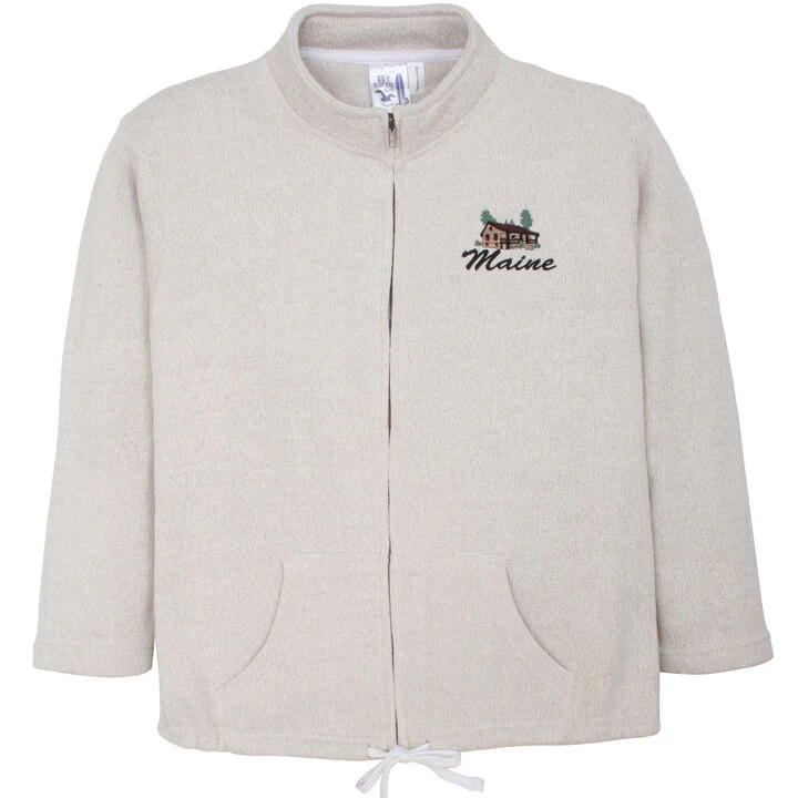 - Design machine-embroidered “Maine” and cabin on upper left chest