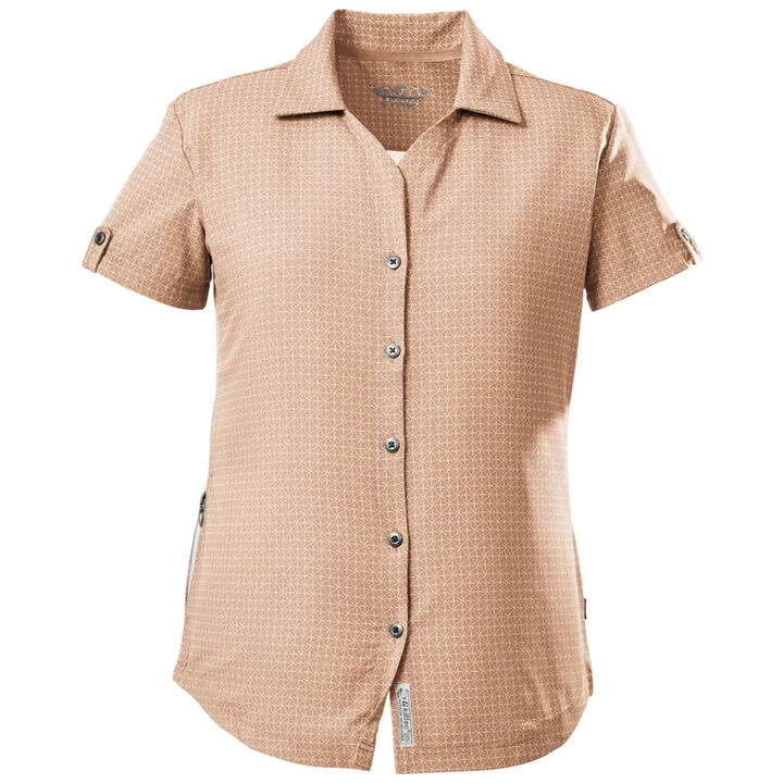 Killtec® Women’s KOS 77 Woven functional blouse with short sleeves is the perfect leisure companion and can be combined in many ways. The blouse is made of quick-drying 4-way stretch material and guarantees a high level of comfort. The filigree all-over print and the decorative straps on the short sleeves give it an elegant touch.