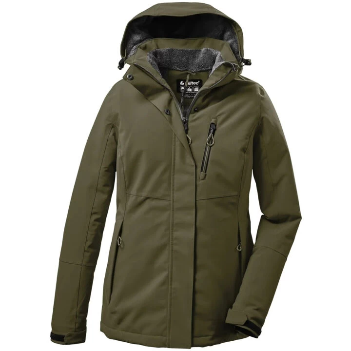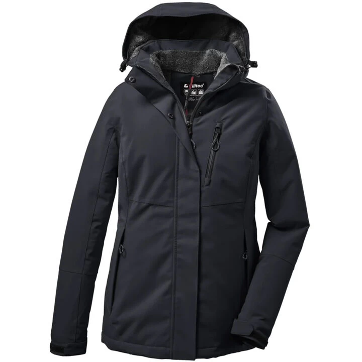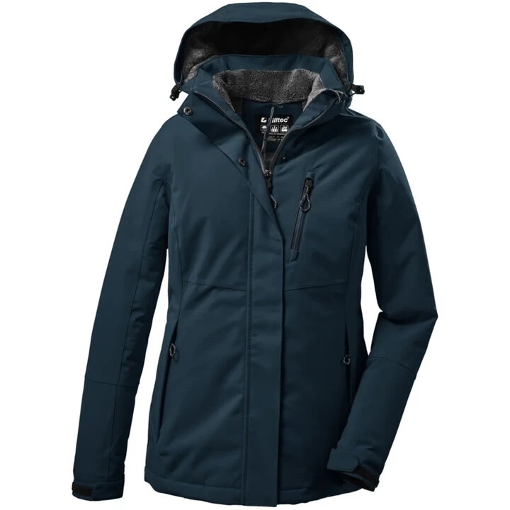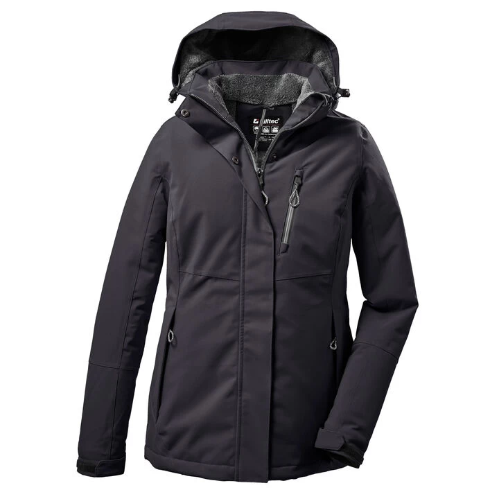 Killtec® Women’s KOW 140 functional Jacket impresses with its timeless design and reliable functionality. With a 10,000 mm water column and welded seams, the jacket is 100% waterproof and windproof. In addition, with 3,000 g / m² / 24 h water vapor permeability, it is also breathable. The hood is individually adjustable and can be removed. The cuffs are adjustable with Velcro® fasteners. The hood and collar are softly lined with cuddly teddy fleece and protect against bad weather. Numerous pockets offer enough space for cell phones, keys and other important items. Killtec® is constantly striving to make the collections more sustainable and future-proof. Killtec® is increasingly relying on more responsible manufacturing processes so this jacket is PFC-free.