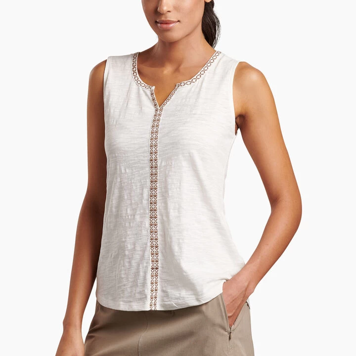 Kühl® Women’s Shay™ Tank highlights Wildfibre™ 100% Organic Cotton. Luxuriously soft, durable, and breathable, this superior Cotton pampers you with comfort. Custom embroidery and a crossover pleat add stylish details to this must-have Summer tank top.