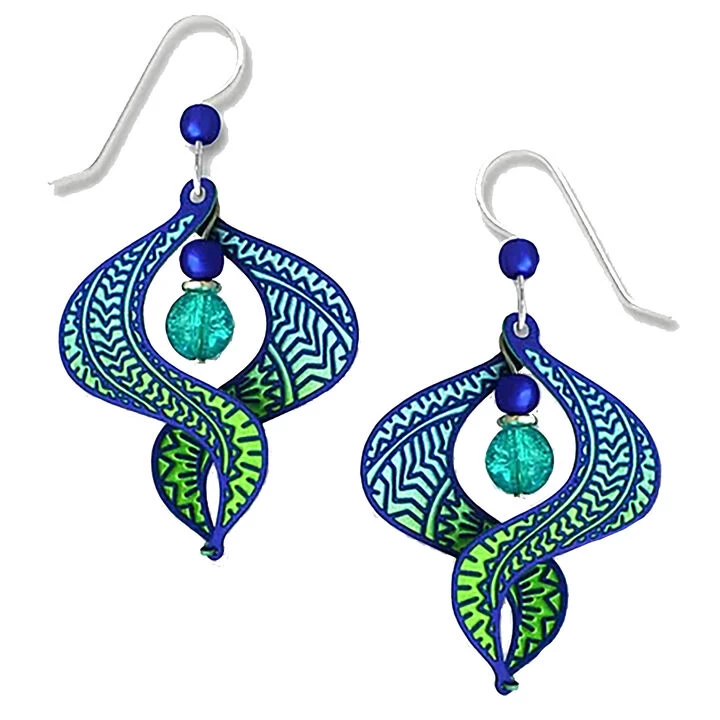 - Ombre Blue/Aqua/Green wide Figure 8 with center bead accent earring