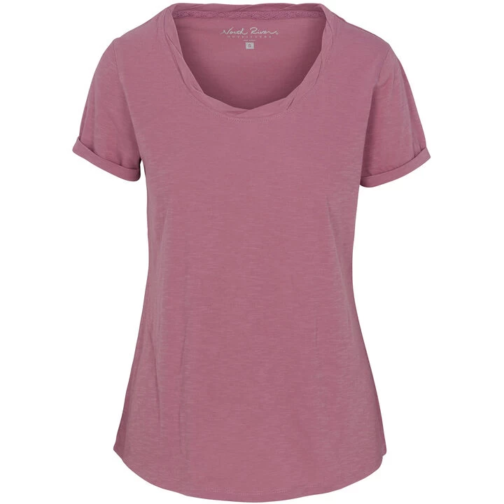Welcome the warmer weather in North River® Women’s Slub Jersey Twisted Scoop Neck Short-Sleeve Shirt.