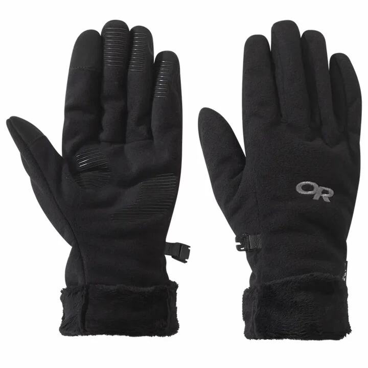 Keep your hands warm on a long day of cold-weather trekking with the Outdoor Research® Women’s Fuzzy Sensor Gloves. Constructed of Posh-Pile™ Fleece fabric they provide the ultimate in cozy, warm comfort. Palm construction, a snug, stretchy fit silicone prints on fingers and touch-screen capability combine for excellent dexterity and grip.
