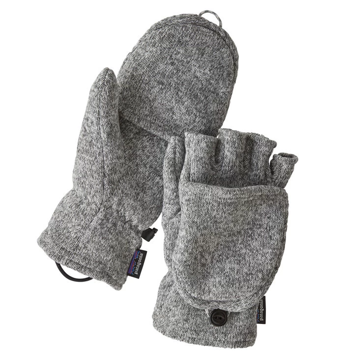 Patagonia® Women’s Better Sweater™ warm and cozy Fleece Mittens convert to fingerless gloves designed for multipurpose sport or casual activities, made of sweater-knit Recycled Polyester Fleece.