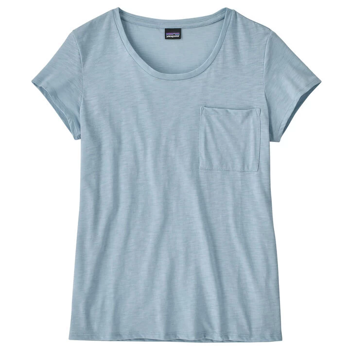 Patagonia® Women’s lightest-weight tee in a classic pocket-tee silhouette, made from supersoft Organic Cotton and Recycled Polyester fabric.