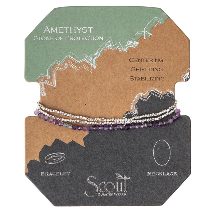 Scout Curated Wears® bracelet becomes a necklace & Ta-Da! Faceted gemstones mix with tiny geometric metal beads to create a subtle and magical piece.