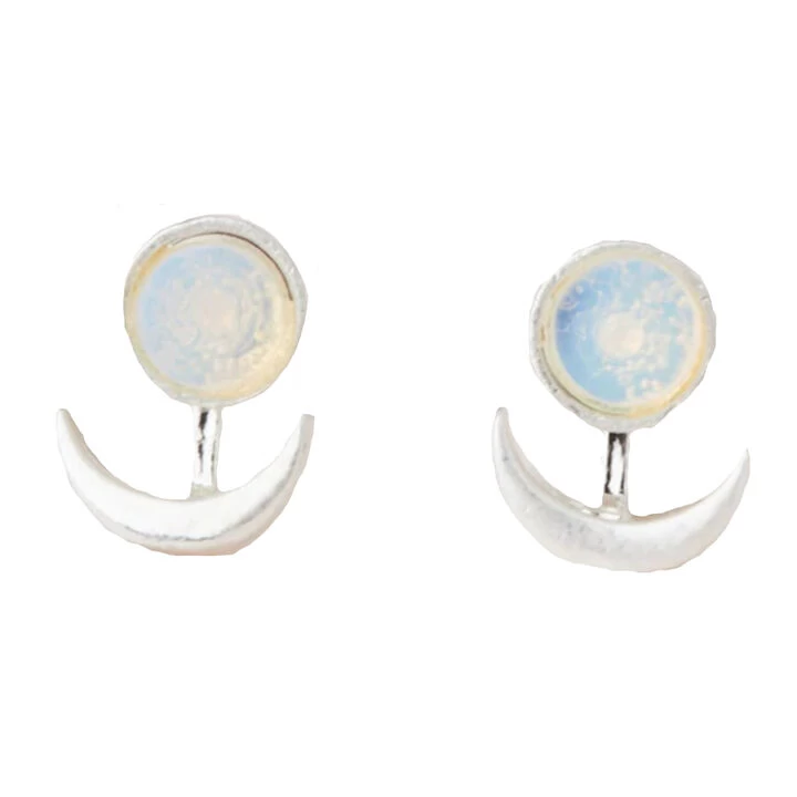 Scout Curated Wears® two pieces come together to create a unique look. The full moon stone compliments a crescent moon piece that attaches to the back and hugs the earlobe. Can be worn three ways: As a stud, stone stud and crescent moon together, or the crescent moon can be attached to any stud earring to create a new look.