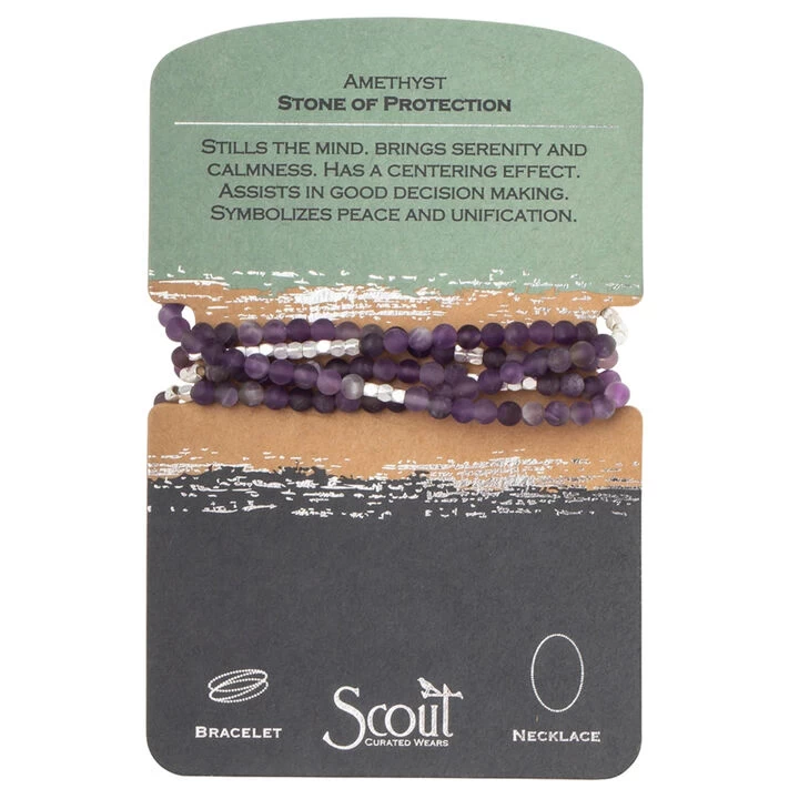 Scout Curated Wears® Women’s bracelet becomes a necklace & Ta-Da! Tap into the energies of the earth. Semi precious gemstones adorn wrist and neckline. Effortlessly converts from bracelet to necklace. Can be wrapped 4-5 times as a bracelet and 1-2 times as a necklace.