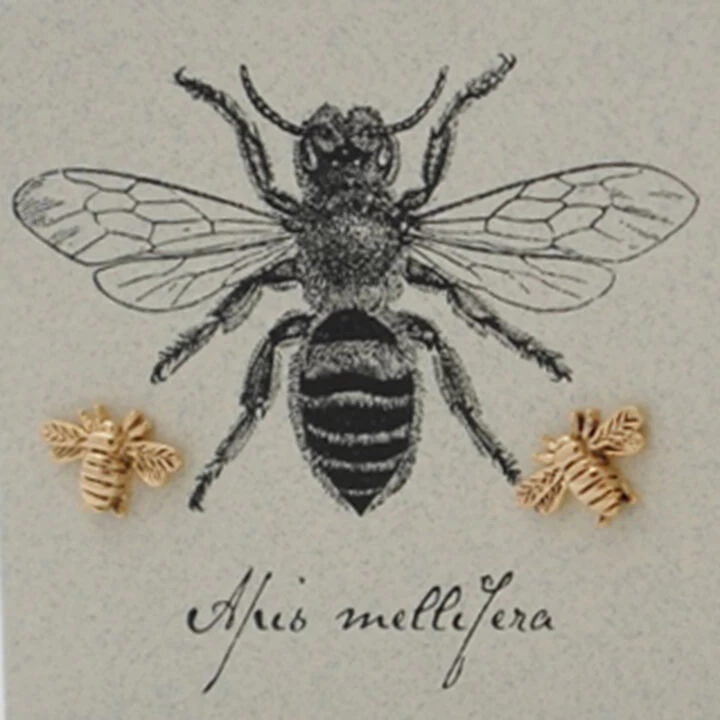 14k Gold over Sterling Silver Bee Earrings mounted on Semaki & Bird, Ltd.® exclusive foldover Natural History cards.