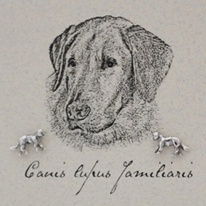 Sterling Silver Dog earrings mounted on Semaki & Bird, Ltd.® exclusive foldover Natural History cards.
