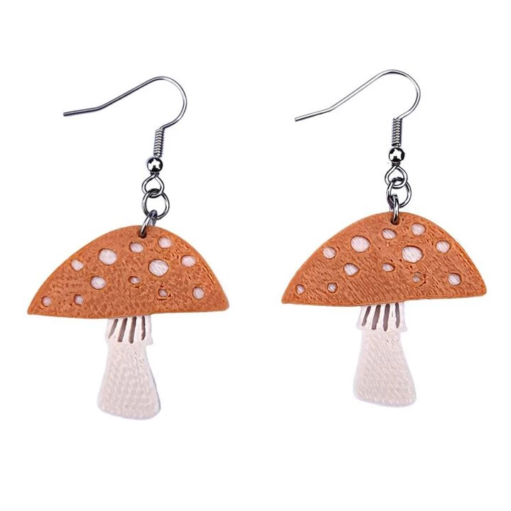 Winter Hill Jewelry® Women’s Mushroom dangle earrings are the perfect gift for the veggie-lover, chef, cook, gardener or mushroomer in your life. The earring (without the hook) measures 1.2 inches in length and 1.2 inches in with. They are unique and incredibly lightweight.They are hand drawn and then 3D printed them PLA, an eco-friendly, plant-based plastic. The inner part is colored by hand then sealed with a protective coating. Surgical steel findings are then put on by hand, great for people with sensitive ears.